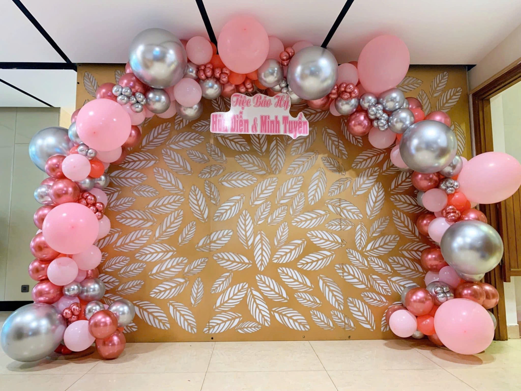 TRANG TRÍ CỔNG BONG BÓNG TONE TRẮNG HỒNG XÁM CỰC TRANG TRỌNG