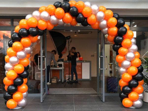 TRANG TRÍ CỔNG BONG BÓNG TONE CAM TRẮNG