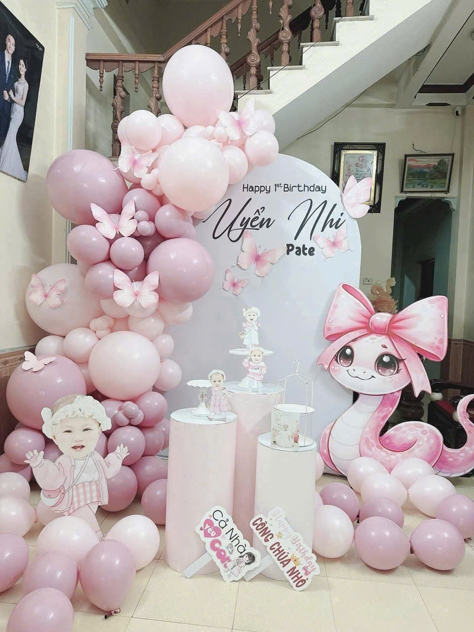 Tiệc sinh nhật của bé là một dấu mốc vô cùng đáng yêu. Với không gian được thiết kế theo phong cách nhẹ nhàng, kết hợp giữa sắc hồng pastel và cánh bướm,mang lại cảm giác thanh bình nhưng vô cùng thu hút. Đây là món quà hoàn hảo để ba mẹ lưu giữ những khung hình kỷ niệm thật trong trẻo cho công chúa nhỏ.