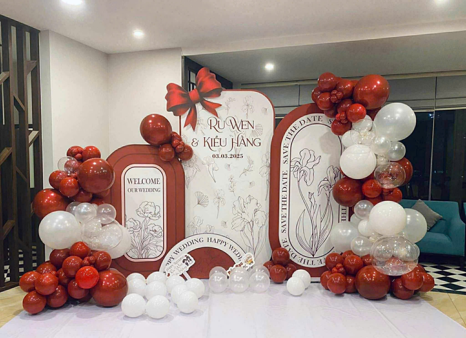 - Tên cô dâu – chú rể (chữ lớn, nổi bật)