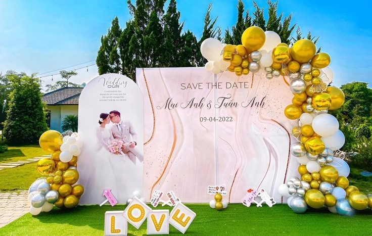 👉 Gợi ý đẹp: trắng + vàng gold + hoa hồng pastel